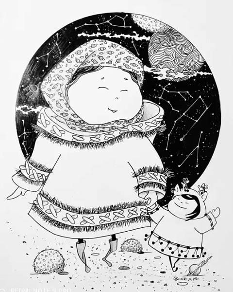 – С именем все просто – по две начальные буквы моего имени и фамилии. Родилась Инки в общем-то случайно. Мы с девочками, которые тоже рисуют в стиле зенарт, решили сделать выставку работ. Каждый должен был придумать сюжет и создать несколько рисунков. Тут я просто нарисовала эту толстую девочку на тоненьких ножках и решила придумывать для нее разные сюжеты. Она всем понравилась, у всех вызывала улыбку. Тогда выставка не состоялась, однако в 2018 году в Краеведческом музее я выставила около 40 работ.