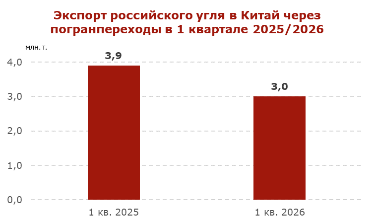 Китай является наиболее крупным покупателем российского угля. В 2025 г. общий импорт угля КНР снизился на 9,6%, до 490 млн тонн, в то время как доля России в импорте на фоне сокращающихся закупок из Индонезии увеличилась с 17,5% до 18,1%. Объем поставок российского угля в Китай в 2025 г. составил 93,1 млн тонн, что, тем не менее, на 2% меньше, чем годом ранее. В целом в КНР наблюдается тенденция снижения импорта угля на фоне развития собственных мощностей по добыче и реализации программы возобновляемой энергетики. В Индию в прошлом году Россия поставила 9,7 млн тонн угля, обеспечив заметный рост на 37% относительно 2024 г. Также мощный рост в минувшем году продемонстрировали экспортные поставки в Республику Корея (на 40%, до 21,4 млн тонн) и во Вьетнам (на 30%, до 7 млн тонн). Поставки в Японию резко сократились на 40%, до 1,1 млн тонн.