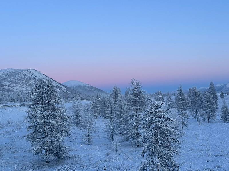 Путь от Якутска до Оймякона занимает два дня, часть дороги проходит через Верхоянские горы. Фото: Дмитрий Осипов