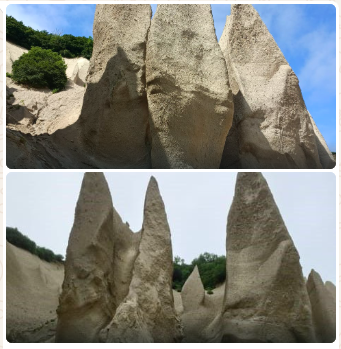 Пемзовые скалы Кутхиных батов до и после землетрясения фото: Михаил Романов, Евгений Денгес.