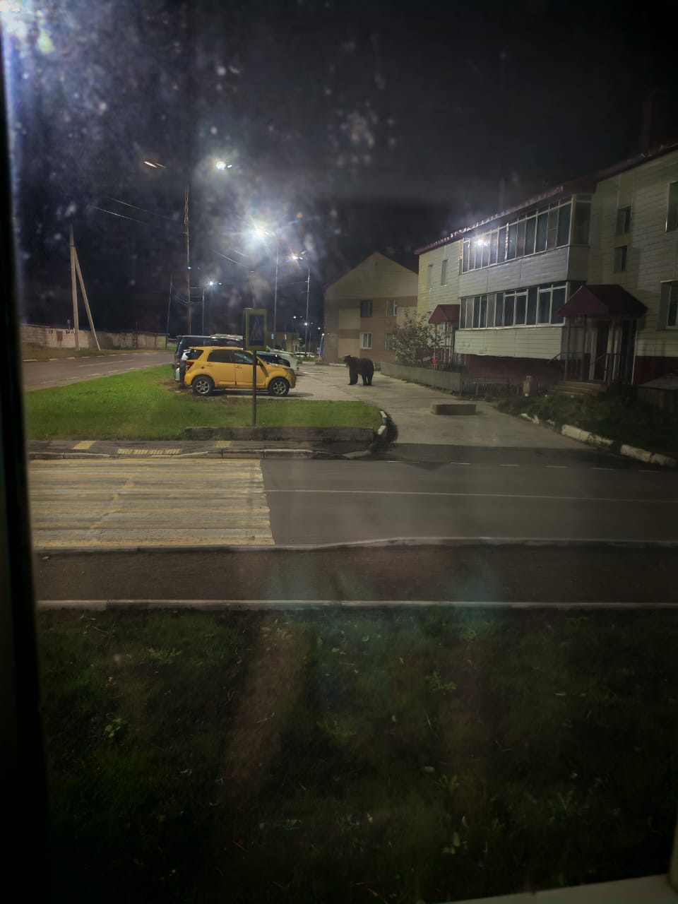 В городе Южно-Курильск на Кунашире этой ночью был замечен крупный медведь. Он ходил вдоль домов, между припаркованных автомобилей. Никто не пострадал, имущество не повреждено, охотоведы ищут хищника.