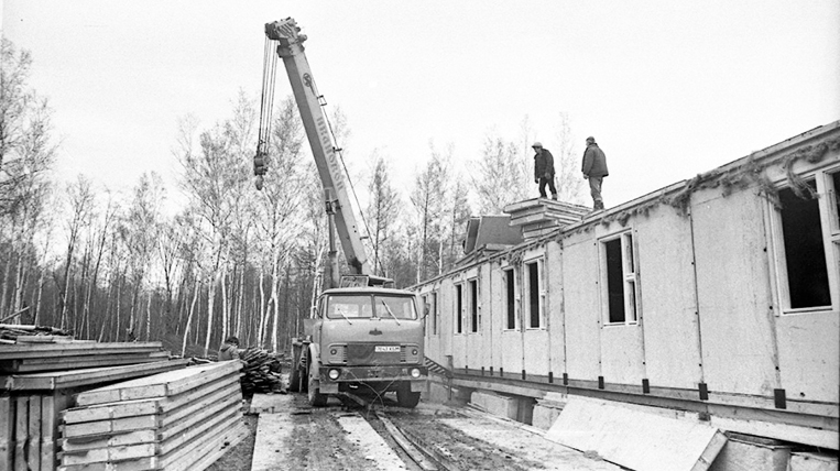 Фото: Строительство общежития для Всесоюзного ударного комсомольского отряда имени XXVII съезда КПСС. Архив