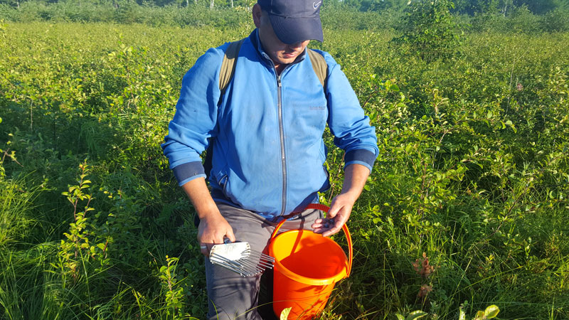 Безработный Евгений среди своих считается передовиком, за 8-часовой рабочий день выносит с болот до 70 литров голубики. Правда, собирает он витаминную угоду скребком. Его рабочий инструмент – предмет гордости, хендмэйд, он сам спаял его из электродов и жести. Однако среди сборщиков больше в чести интенсивный ручной труд. Скребок снимает всю ягоду с куста без разбора, зелёную в том числе, и на следующий раз ничего не остается. А так голубика плодоносит до сентября. Ягоды, как говорят местные, хватает на всех, потому между деревнями нет схваток за территорию. Залётных гостей из города, которые, впрочем, здесь редки, тоже не гонят. «Мы сами здесь гости», говорят сборщики.