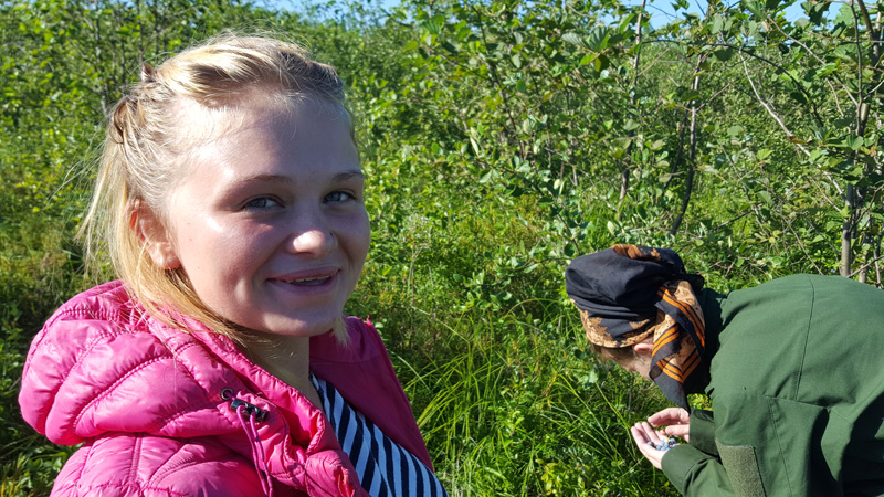 «Вчера был маленький медведь, шли, увидали его, он убежал. Был бы большой, мамаша бы тут орала на весь лес. Медведь вместе с нами кормится на этих полянах, и их много, очень много! Постоянно приезжаешь, тут кочки развороченные. Я учусь в лесхозтехникуме в Вяземском, на автомеханика. Деньги очень нужны, потому иду на риск. Средство от медведя – ноги в руки и бежать. А так работа на свежем воздухе, полезная ягода, мы ею объедаемся. На зиму заготавливаем варенье, так замораживаем. Едим потом до весны» - поделилась еще одна участница самоорганизовавшейся народной артели Анастасия Кузнецова.