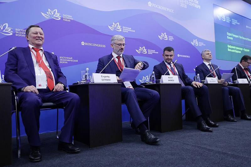 Не осталась без внимания тема китайского транзита: Антон Замков («РТ-Инвест Транспортные Системы») предложил оборудовать все автомобили, пересекающие границу РФ и КНР, системами ГЛОНАСС и китайской Бэйдоу. Цинвэй Чжан (первый секретарь комитета КПК провинции Хэйлунцзян) призвал к реализации совместного проекта «Логистический информационный порт Северо-восточной Азии». Наконец, Виктор Парахин (ФГУП «ЗащитаИнфоТранс») предложил создать «пространство доверия» ЕврАзЭС на основе единой цифровой платформы, включающей «цифровые транспортные коридоры». Такая платформа, по мнению выступающего, могла бы содержать информацию о грузе, обеспечивать ускоренное прохождение таможенных процедур, мультимодальные перевозки, бесшовную и безбарьерную транспортировку. Это позволит сократить время перевозки груза по «зеленому коридору» от Китая до ЕС с 20 до 5 дней. Докладчик рекомендовал использовать в качестве полигона транспортный коридор «Приморье-2», для чего оборудовать участок дороги в этом коридоре «умной» инфраструктурой, запустить по «Приморью-2» беспилотный грузовой автотранспорт, отработать на платформе такие сервисы, как «умный цифровой пункт пропуска», технологию автоматизированной перегрузки, мультимодальных перевозок, «умный порт» и «умный логистический центр». Успешный опыт создания «цифровых коридоров» Приморье-1 и Приморье-2 может быть впоследствии распространен на другие трассы.