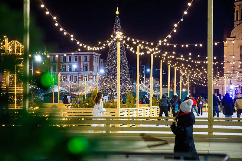 В Чите главная елка Забайкалья встречает гостей на площади Ленина. Здесь обустроили целый ледовый городок — с двумя катками — для взрослых и детей, горками и аттракционами.