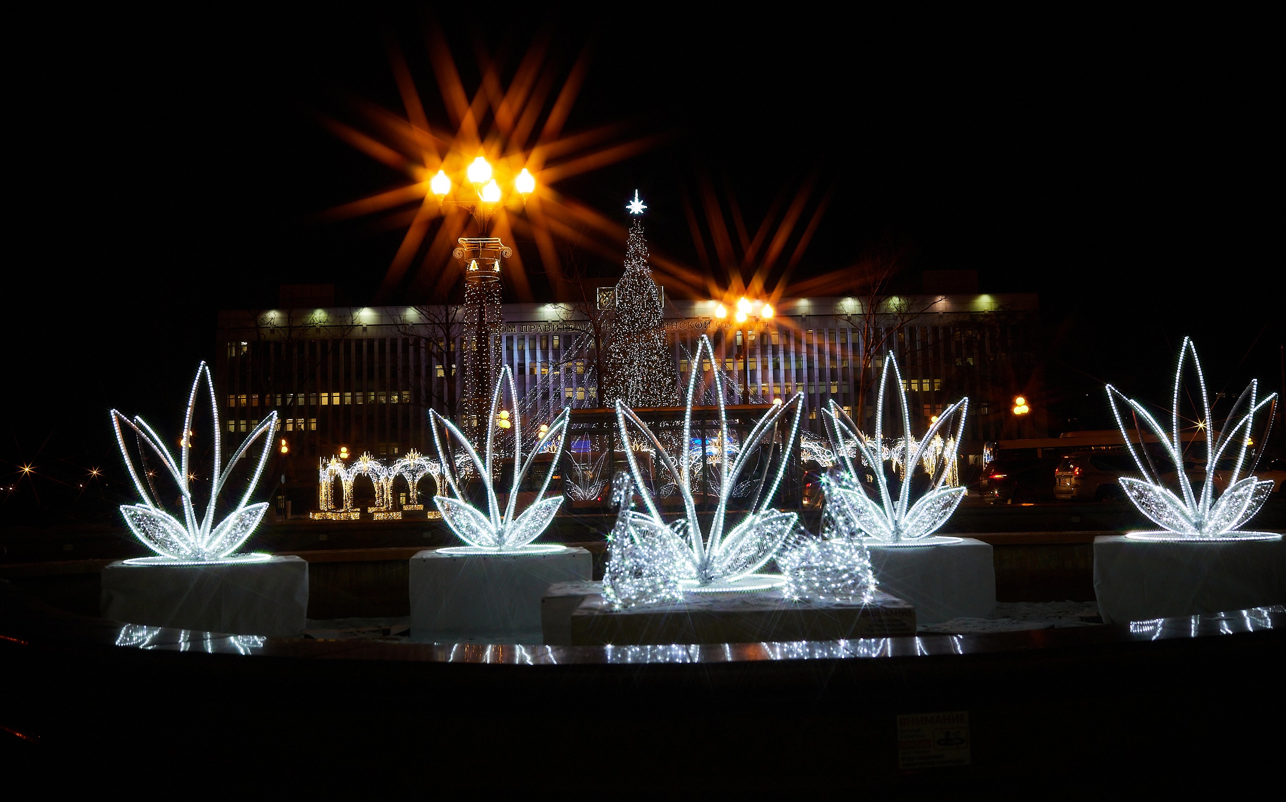 Сказка пришла и в центр Южно-Сахалинска. Елка и шатер установлены на главной площади у Дома Правительства. На оформление ушло 4 км гирлянд! Местные жители загадывают тут желания.