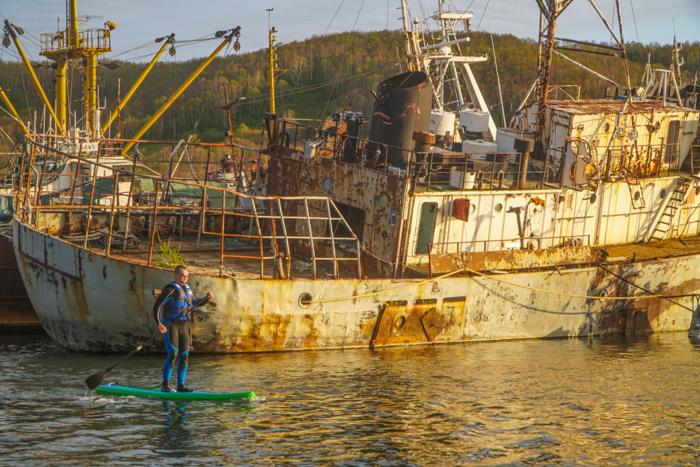 На Камчатке sup-серфингисты облюбовали кладбище кораблей