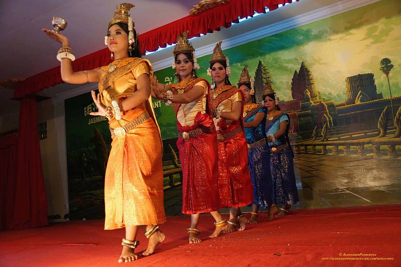 Прежде всего, это молельни со статуями Будды и небольшие алтари, украшенные гирляндами цветов. И на их фоне — бритоголовые монахи в оранжевых одеяниях. Впрочем, господствующий ныне в Камбодже, как и в других странах Юго-Восточной Азии, буддизм покоится на многовековом фундаменте и смеси религиозных и культурных традиций индуизма. И большинство храмов в окрестностях Сиемреапа, начиная с Ангкор-Вата, используемые сейчас не только в качестве объектов паломничества туристов, но и как буддийские святилища, изначально строились для поклонения индуистским божествам, в первую очередь Шиве и Вишну. Этот же глубинный слой местного культурного наследия туристам демонстрируют в качестве элемента экскурсионной программы. Так, в один из вечеров нас привезли в уютный ресторан, где очаровательные местные девушки и крепкие парни в танцевальном шоу «Апсара» исполняют древние кхмерские танцы, родившиеся еще в эпоху поклонения пришлым индуистским богам.