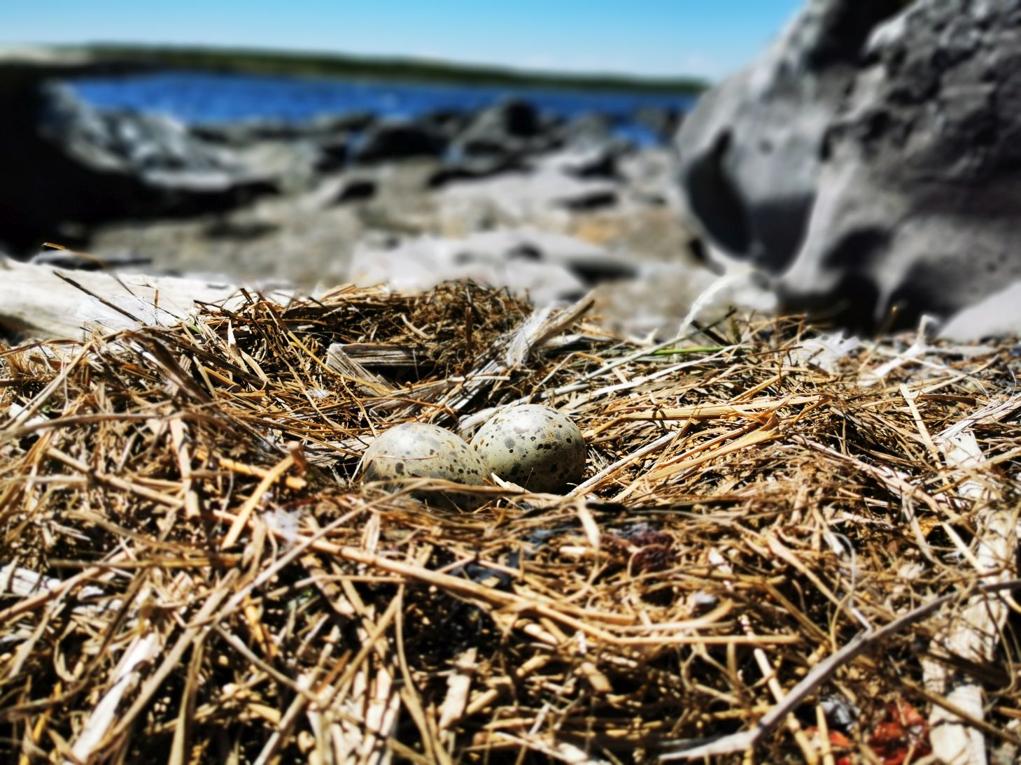 Вскоре стала ясна причина такого беспокойства – сойдя на берег, мы обнаружили, что идти по острову надо очень осторожно: на каждом шагу попадались птичьи гнезда, и в каждом из них лежало по 2-3 яйца. Наш проводник рассказал, что несколько лет назад весной, еще по льду, на остров пробралась лиса. Она прожила там всю весну и лето, вывела лисят и истребила все яйца. Зимой ушла. Мелкими аккуратными шажочками погуляв по высокого берегу острова и сделав несколько снимков, мы устроили совет возле одного из гнёзд. Одно яйцо лежало не внутри гнезда, а рядом – будто выпало. Обсудив, положить его обратно или нет – мы решили не нарушать естественный ход вещей – и потихоньку ушли.