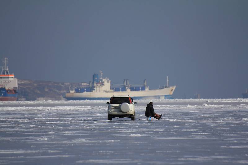 Утро принесло с собой хорошую погоду и новые приключения. Пара звонков – и вот местный житель забирает нас на видавшем виды джипе. Едем на остров Токи. Это заповедная зона, под частным патронажем. Местный предприниматель взял шефство над небольшим клочком земли, который облюбовали чайки и ларги - дальневосточные нерпы. Попасть сюда можно только по предварительному согласованию, главное условие - не нарушать покой здешней живности.