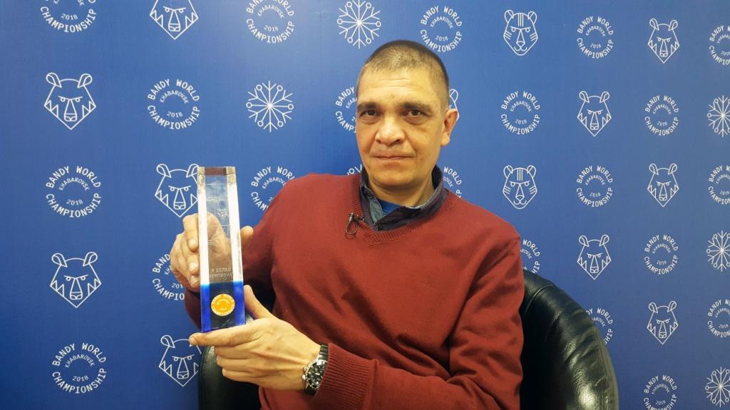 Еще один приз попал в копилку Алексея Дядькина, фаната со стажем, известного коллекционера хоккейной атрибутики. Алексея называют "ходячей энциклопедией" бенди. В дни чемпионата увидеть его коллекцию можно будет в холле арены "Ерофей". Статуэтку получил также коллекционер значков, конвертов и прочей раритетной атрибутики на тему хоккея с мячом Владимир Микулинский, собирающий это богатство с 13-ти лет.