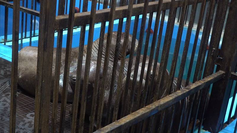 О том, что среди узников «китовой тюрьмы» есть моржи стало известно благодаря экологам еще в декабре 2018 года. По заключению ветеринара, который проводил тогда обследование состояния животных по просьбе Владивостокской природоохранной прокуратуры, в Средней содержались шесть щенков тихоокеанского моржа. Все они были сеголетками, то есть находились в возрасте до года. На момент обследования им было не более восьми месяцев.