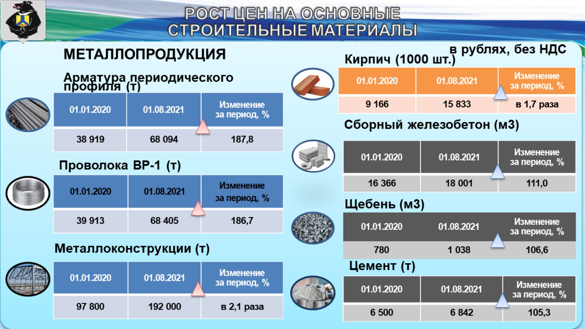 Докладчик, министр строительства Хабаровского края Андрей Чекулаев, лишь кратко обрисовал нужды и чаяния, заострив внимание на том, что уже сейчас имеющаяся нехватка стройматериалов привела к скачкообразному росту цен на них. «По отдельным позициям, как, например, по металлопрокату, рост составил более 100%, – отметил министр. – По нашему обращению краевая антимонопольная служба провела проверку. Необоснованного роста цен не установлено, он обусловлен ростом стоимости сырья. Резко подорожали также кирпич, сборный железобетон, щебень и цемент».