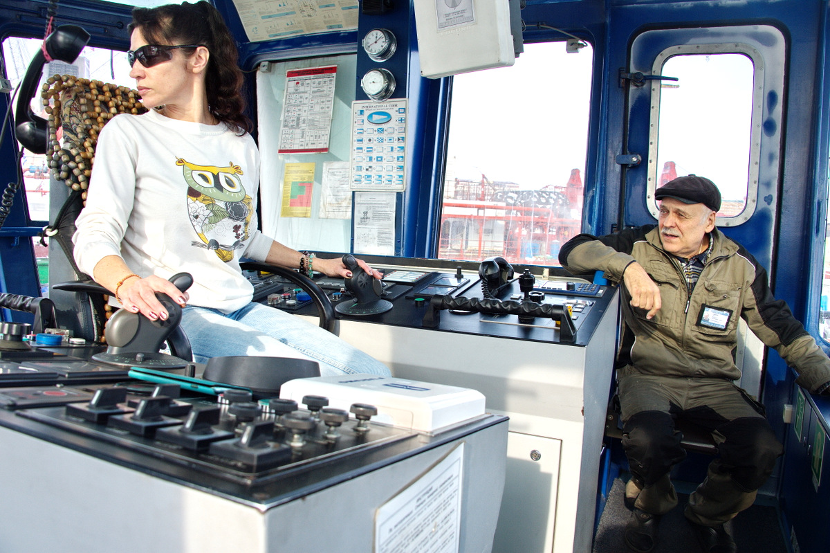 На «Добрыне» Оксана работает всего год. До этого замещала других сменных капитанов буксиров в рыбном порту, пока ее не пригласили в торговый порт на постоянное место работы. Сначала были буксир «Персей», затем полтора года капитаном на «Могучем», и только потом - «Добрыня». Чтобы попасть на судно с богатырским названием, пришлось в спешном порядке осваивать управление азимутальными насадками.