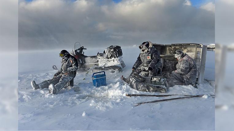 Морозный март. Лунки во льду, рыбаки ловят корюшку. В какой-то миг налетает снежный заряд. Фантастический свет заливает зимнее небо… люди плотнее закутываются в тулупы, замирают. Рыбак и фотограф Александр Терещенко выхватывает фотоаппарат и делает несколько снимков.