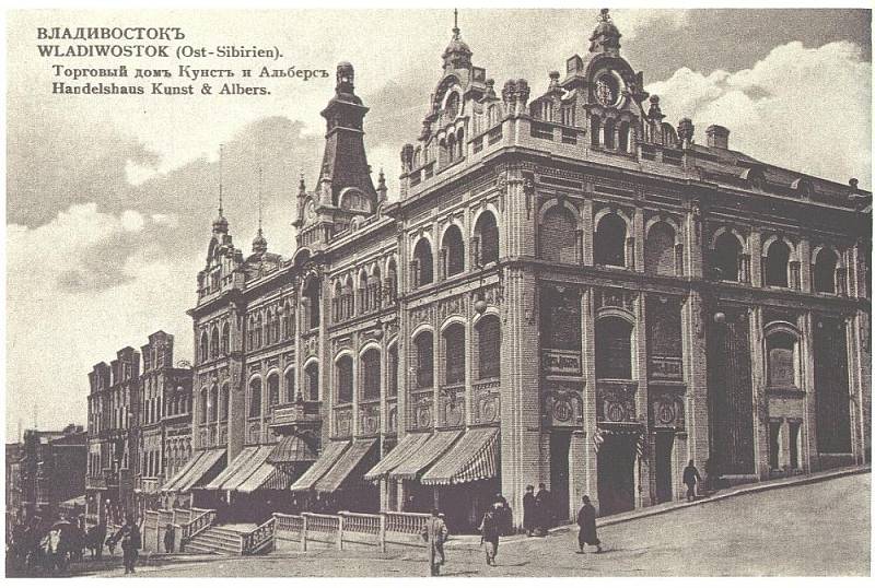 Начало положено строительством уникального магазина (ныне ГУМ) во Владивостоке. Таких супермаркетов в то время не существовало не только в европейской России, но и в Европе. Дело не только в размере магазина, превосходящем и знаменитый Елисеевский, но в ассортименте, в технике торговли, во внешнем виде прилавков. Предоставление кредита на покупки, бонусные программы, система скидок - все это есть в магазине «Кунст и Альберс» в конце XIX столетия, на самой дальней и неосвоенной окраине мира. А ассортимент? По воспоминаниям жителей города тех лет в магазине «Кунст и Альберс» можно было купить ВСЕ: от автомобиля последней марки до уссурийского тигра, от изделий последней выставки мод из Парижа, до экзотических фруктов Океании. Если товар вдруг не находился, то заказ принимался и исполнялся в течение месяца.