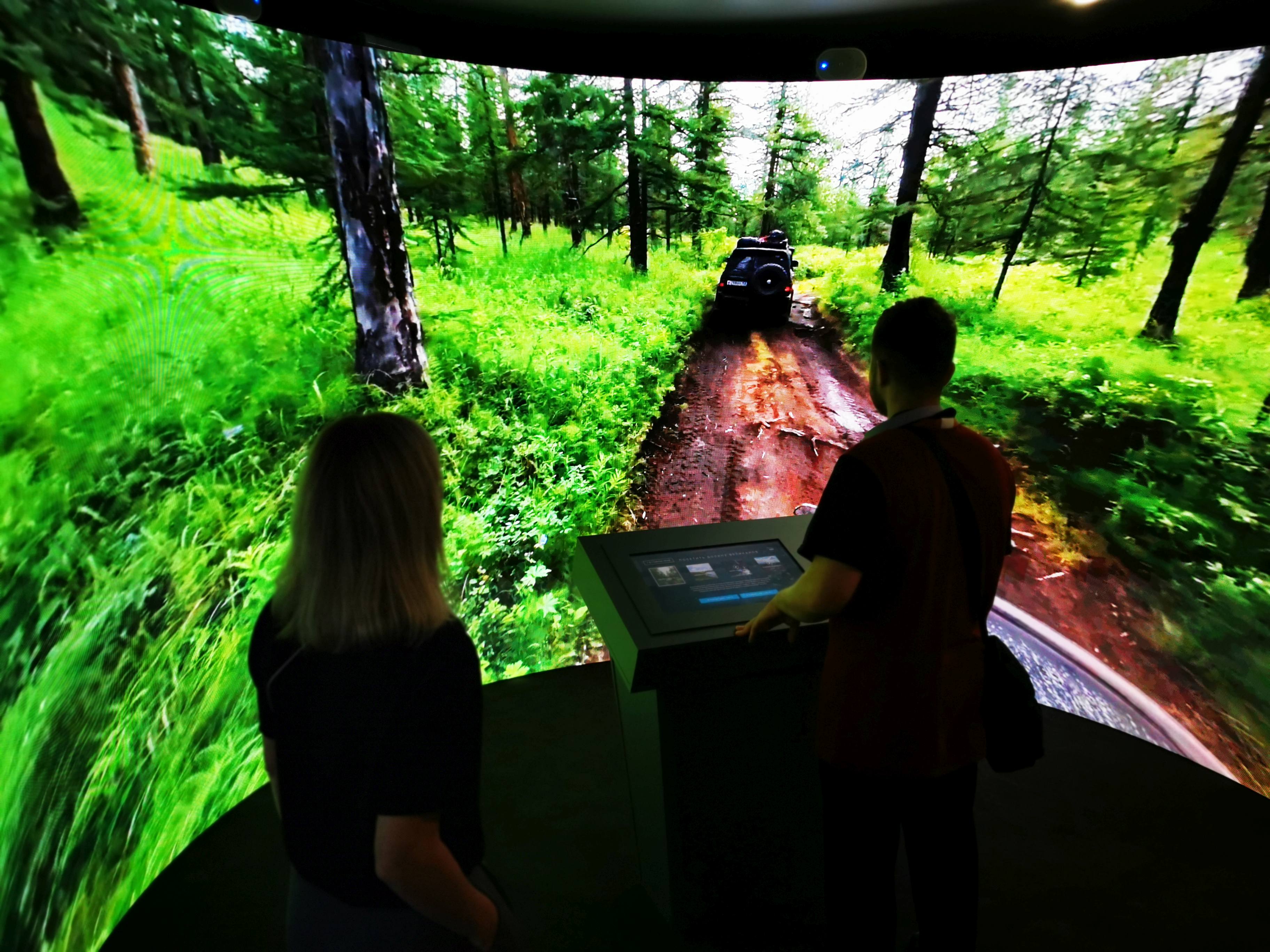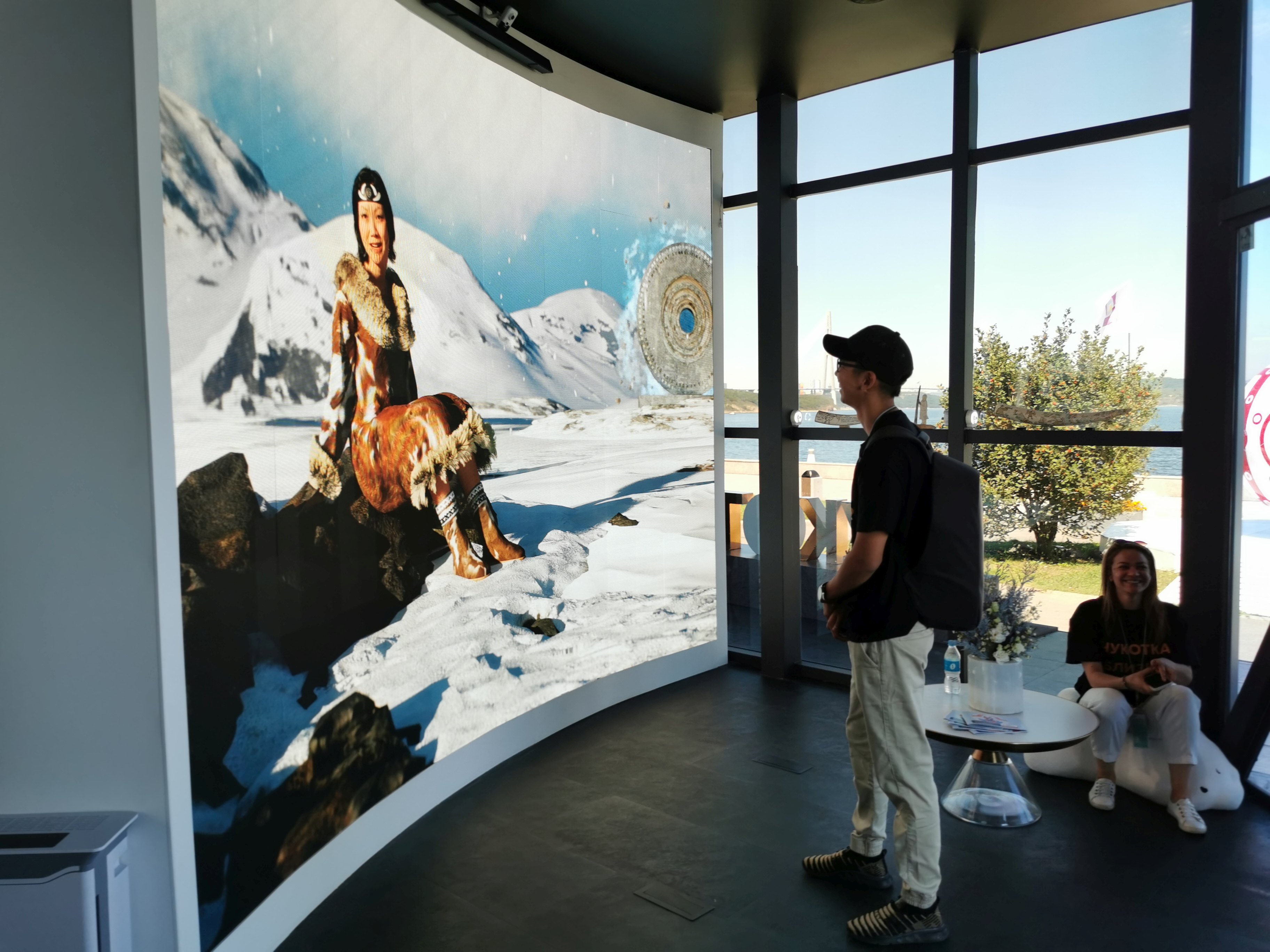 «Интерактив» — ключевое слово для описания «начинки» каждого регионального павильона. Большие экраны, изогнутые большие экраны, очень большие круговые экраны с подчас замысловатыми способами взаимодействия с ними стали обязательным атрибутом экспозиций. фото: EastRussia
