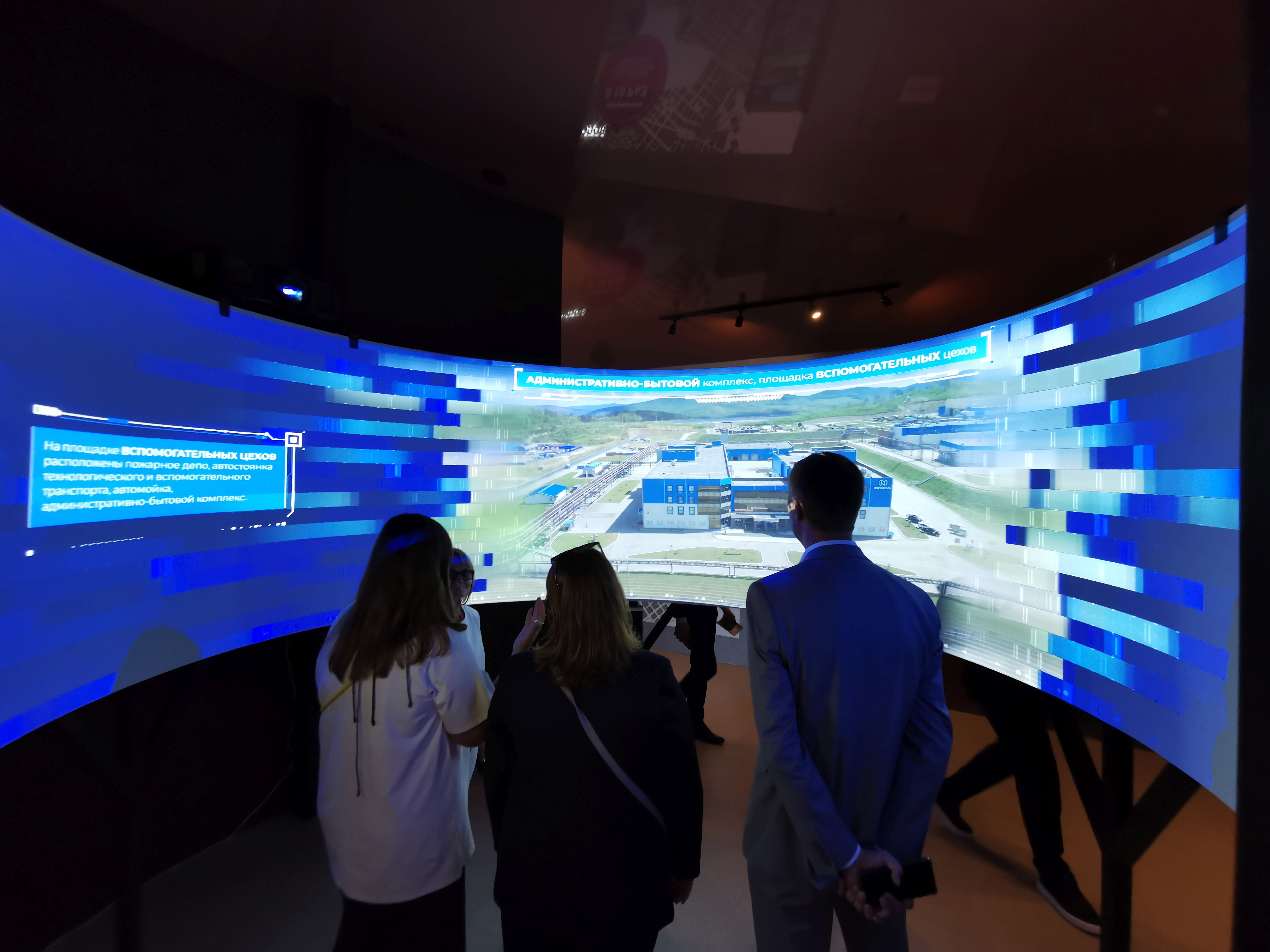 Представлены в павильоне и ключевые проекты региона — экспозиции компании «Удоканская медь» и Быстринского ГОКа. Информация о последнем транслируется на большом почти круговом экране, создающим эффект полного погружения в мир обогащения золотой, медной и железной руды. фото: EastRussia