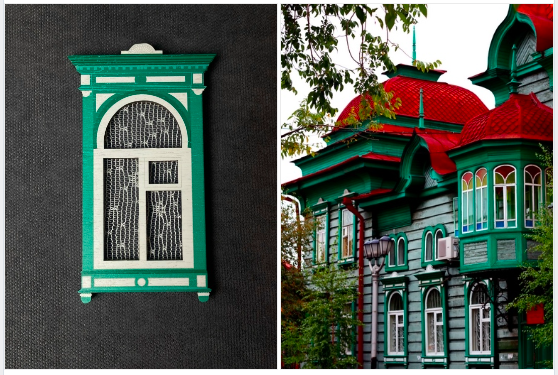 Идея делать наличники не нова — мы её подсмотрели. У нас в Чите много объектов культурного наследия. Сложность была скорее в том, с чего начать. В первую очередь я выбрала дома с самыми яркими и красивыми наличниками — это реальные окна усадьбы Коновалова, Дома Игнатьевой, усадьбы Лукина, особняка и доходного дома Полутова. Пока у нас коллекция небольшая, но мы будем расширяться. В длину сувениры около 15–20 сантиметров. К «окошку» я прилагаю открыточку с изображением здания и краткой информацией, а также QR-код, который ведёт на сайт, где можно почитать более подробно.