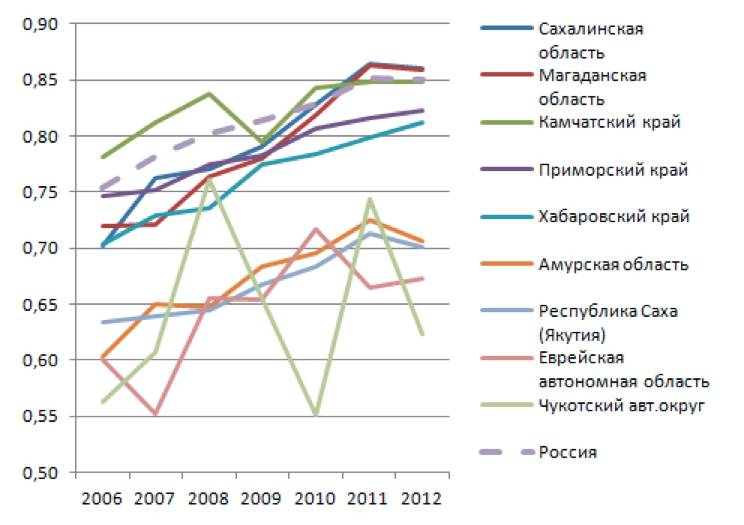 | г.Москва | 0,94 | 6 | Республика Саха (Якутия) | 0,70 | 78 |