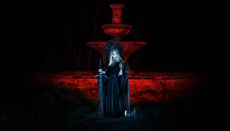 … Вас не должны останавливать препятствия! Забор? Пробуйте снять через него. Пользуйтесь бесшумным режимом. Приезжая вечером на локацию, не делайте 1 снимок и не убегайте. Вот еще случай: однажды в 20 км от Владивостока я увидел старый фонтан. Появилась задумка, я стал собирать реквизит с мира по нитке. Достал меч, потом вспоминаю, что друзья у меня выпустили необычную мебель. Вспоминаю, что есть у меня знакомая модель, похожая на ведьму недобрую. Я решил всё собрать в кучу. Назначаю встречу, развешиваю паутину, приглашаю знакомых пауков. Приезжает второй фотограф, - а я всегда беру на важные мероприятия друга-фотографа, ведь что-то может произойти с камерой, с машиной, нельзя людей подводить. Дальше приезжает директор мебельной фабрики, машина с догом, машина с креслом, с визажистом, и приехала тётечка, которая привезла из своего бутика вещи для модели. И тут без 5 восемь приходит смс: «я сегодня не смогу». Я такой: надо же, как нехорошо получилось! Понимаю, что пятничным вечером летом все заняты. Деваться некуда, я смотрю по сторонам, а кто там у нас в машине сидит? Мне говорят: это моя доча. Я говорю: «Хочешь, красиво тебя сфотографирую?» Она: «Хочу». 13 лет девочке. Свет стоит сзади красный, и с двух сторон 2 источника. Следом запечатлели её младшую сестру, и мне этот кадр даже больше понравился: