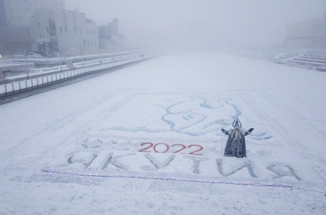 «Несмотря на сильный мороз и густой туман, участники акции за несколько часов своими силами на льду нарисовали огромную новогоднюю открытку. На ней изображен Бык холода – символ якутской зимы», - сообщили в Министерстве экологии, природопользования и лесного хозяйства республики Саха (Якутия).