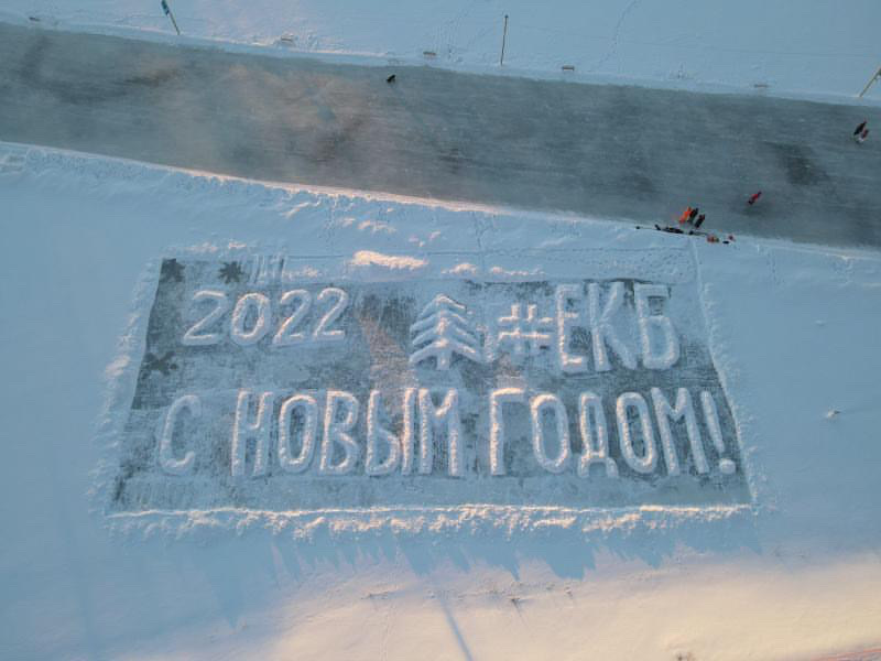 В Екатеринбурге ледовую открытку нарисовали в Преображенском парке микрорайона «Академический». Участие в ее создании приняли 15 человек.