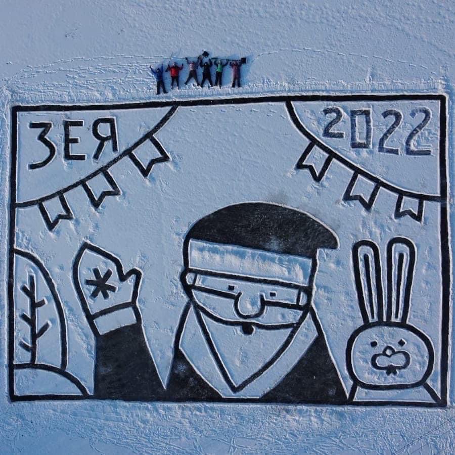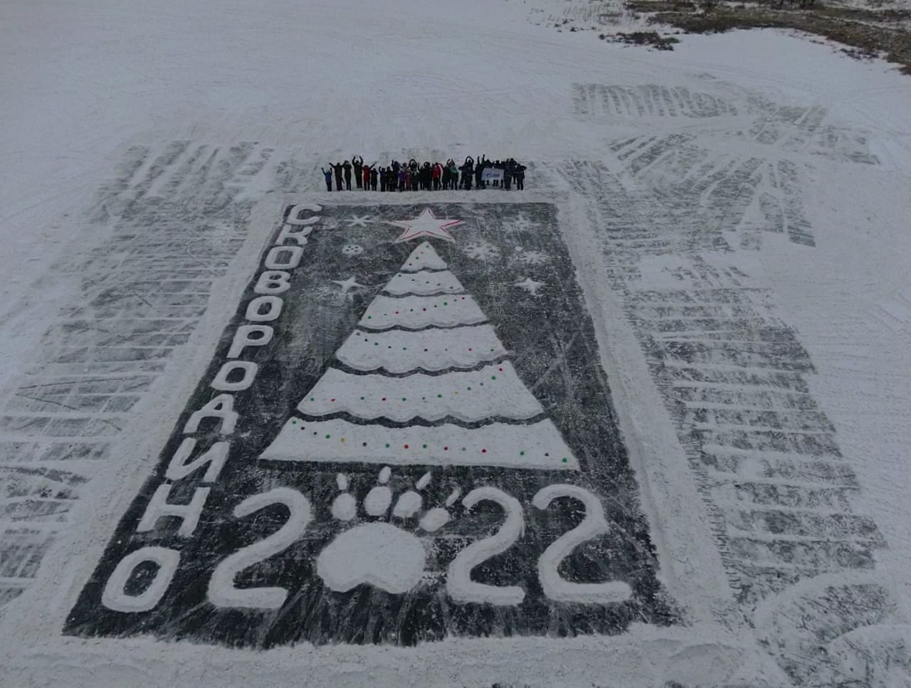 40 человек вышли на лед и приняли участие в создании ледовой открытки в городе Сковородино. Для них это уже традиция. В прошлом году написали одну из самых больших снежных картин.