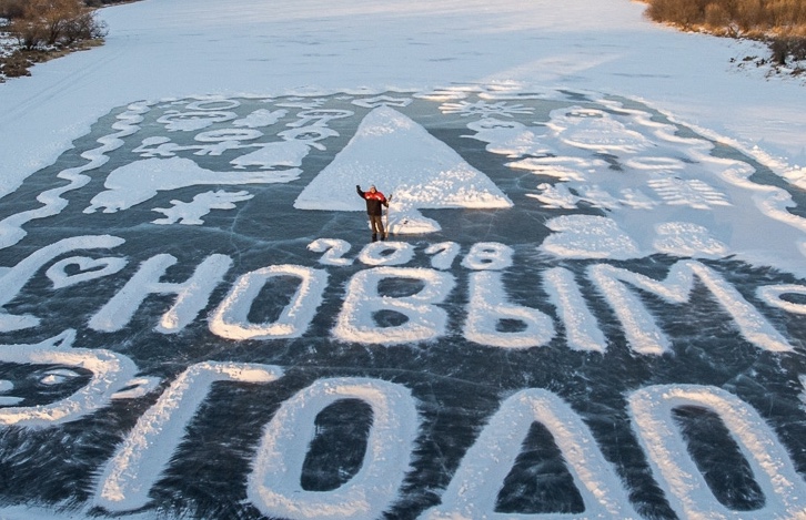 В этом году жители Амурской области уже нарисовали около 40 ледовых открыток. Однако, поздравления на льду создают не только на Родине деда Валеры.