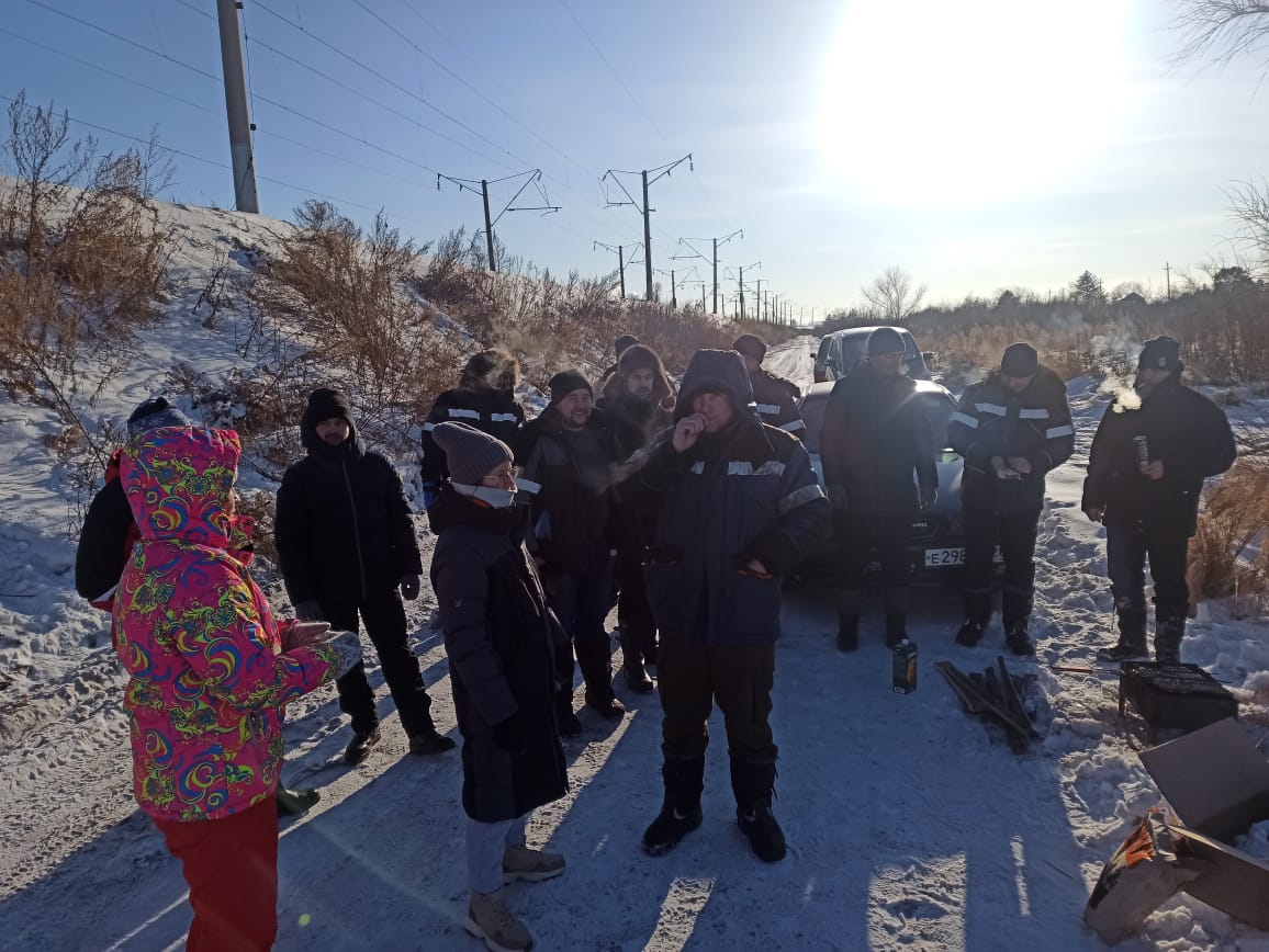 «Было минус 31! Холодно и ветер сильный! Представьте, на озере там со всех сторон дует. Конечно, морозно очень. Одевались очень тепло! Несколько слоев одежды. Каждый брал с собой термос с горячим чаем, питание тоже организовали», - рассказал машинист электровоза эксплуатационного локомотивного депо Белогорск ТЧЭ 11 Григорий Чирей.