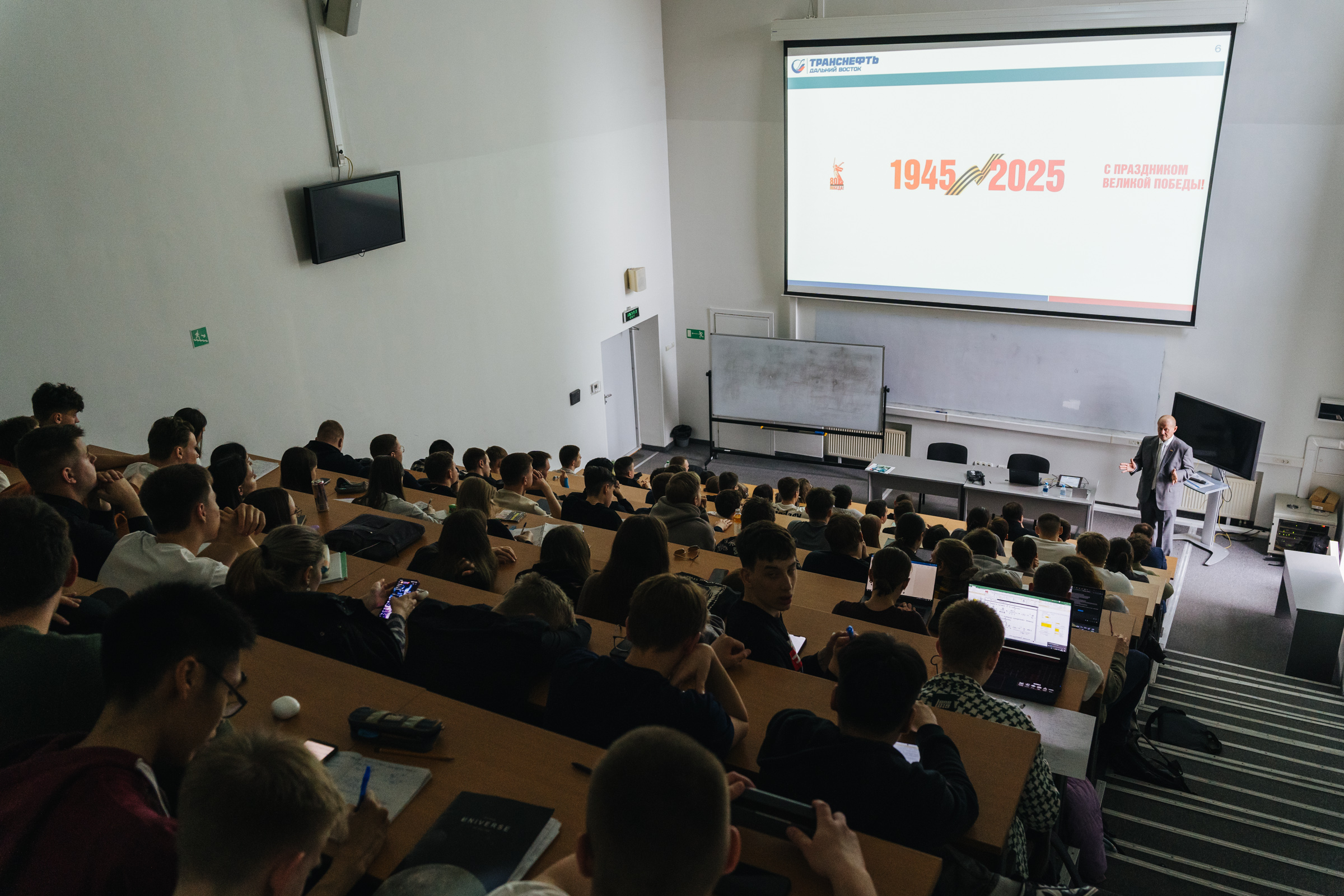 Прокладка трубопровода с острова Сахалин стала одной из героических строек, вошедших в историю Победы. В год ее 80-летия организации системы «Транснефть» по всей стране взяли на себя просветительскую и образовательную миссию. Они рассказывают молодежи о роли нефти в Великой Отечественной войне и вкладе нефтепроводчиков в нашу Победу. «Транснефть – Дальний Восток» пошла в образовательные заведения Приамурья и Приморья, Хабаровского края и ЕАО. Одна из первых лекций состоялась в Дальневосточном федеральном университете (ДВФУ), опорном вузе отрасли на Востоке России.