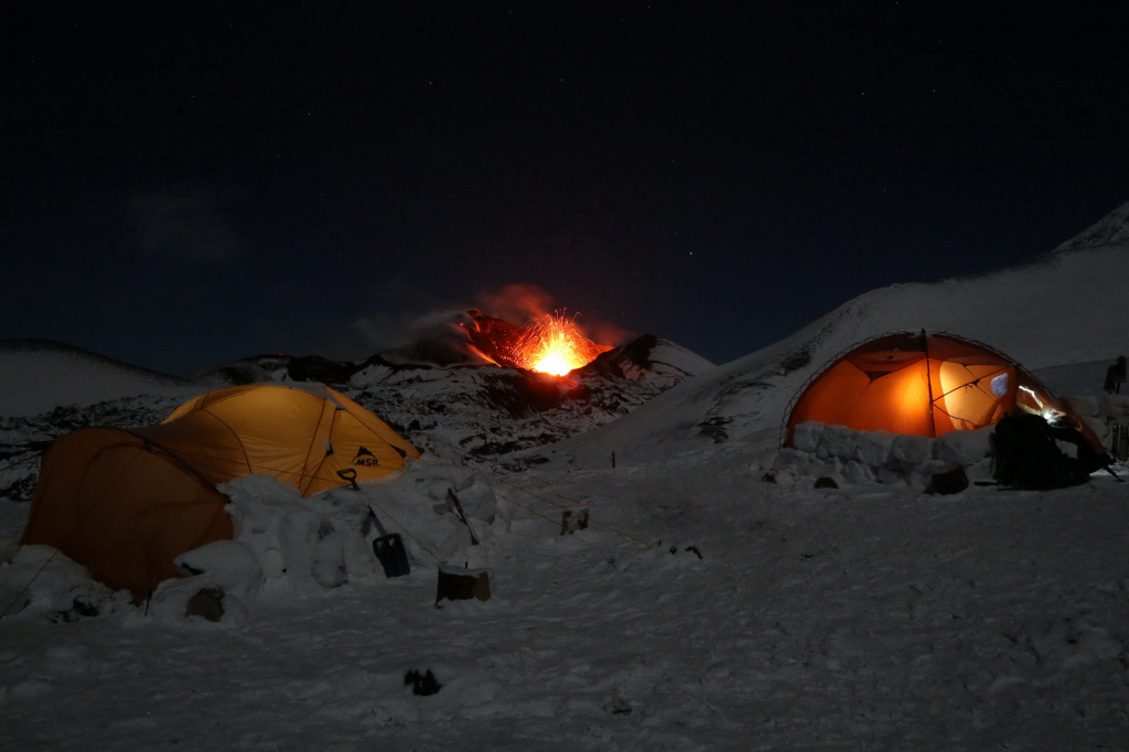Одно из ярчайших трещинных извержений на Толбачинском долу в 2012-2013 длилось девять месяцев. Оно было не только зрелищным, но и, по сравнению с вулканами на тех же Гавайях, к которым не подобраться из-за кордонов, доступным. Тогда на склонах «роковой горы» в центральной части полуострова слышалась речь на десятках языков. Туристы непрерывно появлялись всю зиму, добирались и вертолетом, и пешком, и на снегоходах, разбивали палатки поближе к «огоньку».
