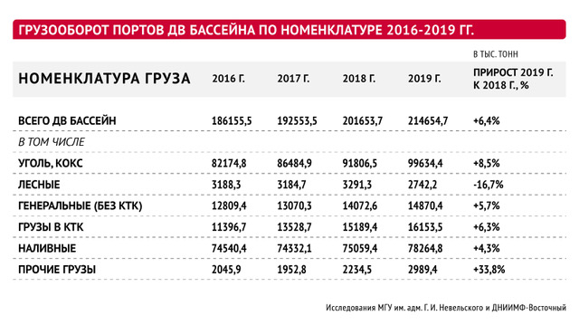 Традиционный локомотив роста грузовой базы в регионе – сырьевые ресурсы, доля угля – около 47%. По данным совместного исследования компании «ДНИИМФ-Восточный» и НОЦ «Морской транспорт и пространственная логистика» Морского государственного университета имени адмирала Невельского, несмотря на ограничения железнодорожной инфраструктуры на подходах к портам, объем перевалки угля вырос на 8,5%.
