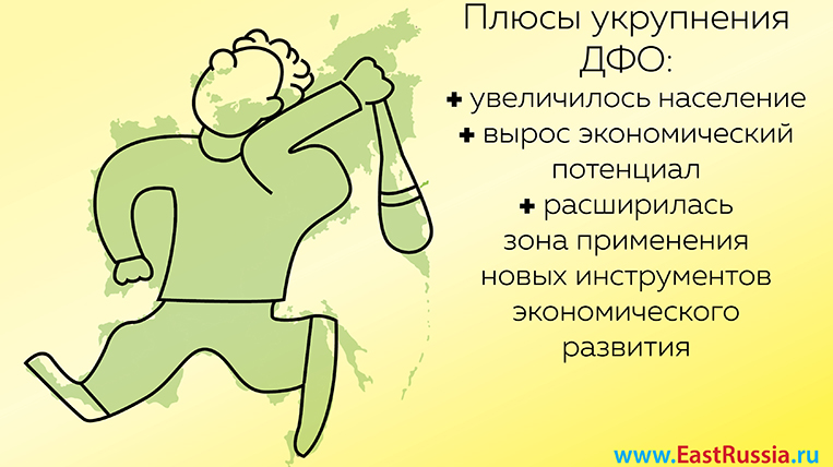 "Старый" ДФО имел площадь 6,17 млн кв км (36% от территории России) и 6,165 млн человек населения на 1 января 2018 года. "Новый" ДФО за счет 783,2 тыс. кв км Забайкальского края и Бурятии "подрос" до 6,95 млн кв км (40,6% от площади России). Но приятнее всего - административно созданный прирост населения Дальневосточного округа. Его стало на два с лишним миллиона человек больше. И теперь с населением 8,22 млн человек Дальний Восток стал местом проживания 5,6% россиян (а был - 4,2%).
