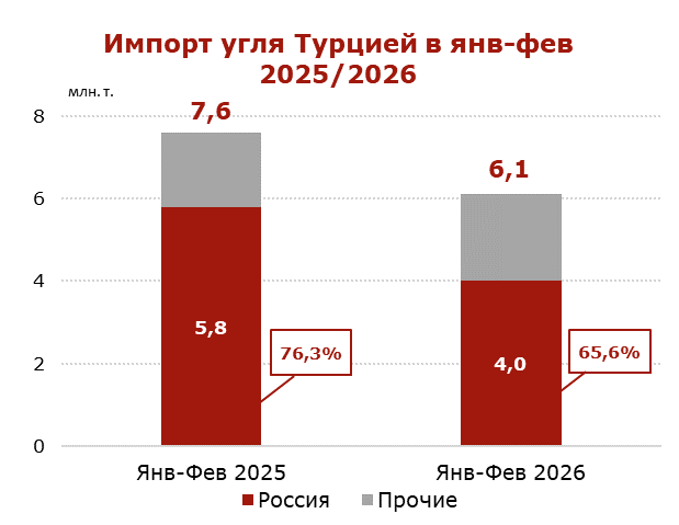 Китай является наиболее крупным покупателем российского угля. В 2025 г. общий импорт угля КНР снизился на 9,6%, до 490 млн тонн, в то время как доля России в импорте на фоне сокращающихся закупок из Индонезии увеличилась с 17,5% до 18,1%. Объем поставок российского угля в Китай в 2025 г. составил 93,1 млн тонн, что, тем не менее, на 2% меньше, чем годом ранее. В целом в КНР наблюдается тенденция снижения импорта угля на фоне развития собственных мощностей по добыче и реализации программы возобновляемой энергетики. В Индию в прошлом году Россия поставила 9,7 млн тонн угля, обеспечив заметный рост на 37% относительно 2024 г. Также мощный рост в минувшем году продемонстрировали экспортные поставки в Республику Корея (на 40%, до 21,4 млн тонн) и во Вьетнам (на 30%, до 7 млн тонн). Поставки в Японию резко сократились на 40%, до 1,1 млн тонн.