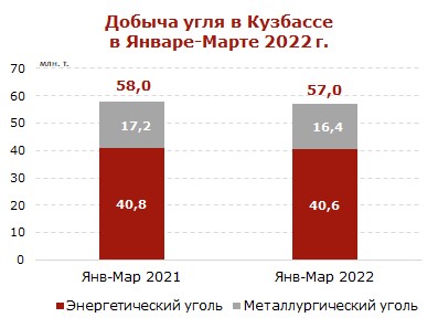 Добыча угля Evraz в 2021 г. составила 23.2 млн т. (+2.5 млн т. или +12.2% к 2020 г.). В январе-апреле 2022 г. Evraz добыл 6.4 млн т. (-1.8 млн т. или -22.2% к аналогичному периоду 2021 г.).