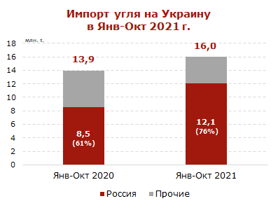 В структуре экспортного грузопотока доля угля составляет свыше 50%. Погрузка угля в порты в январе-октябре 2021 г. составила 156.9 млн т. (+16.6 млн т. или +12% к январю октябрю 2020 г.). Около 53% всего объема отправлено в порты Дальнего Востока.