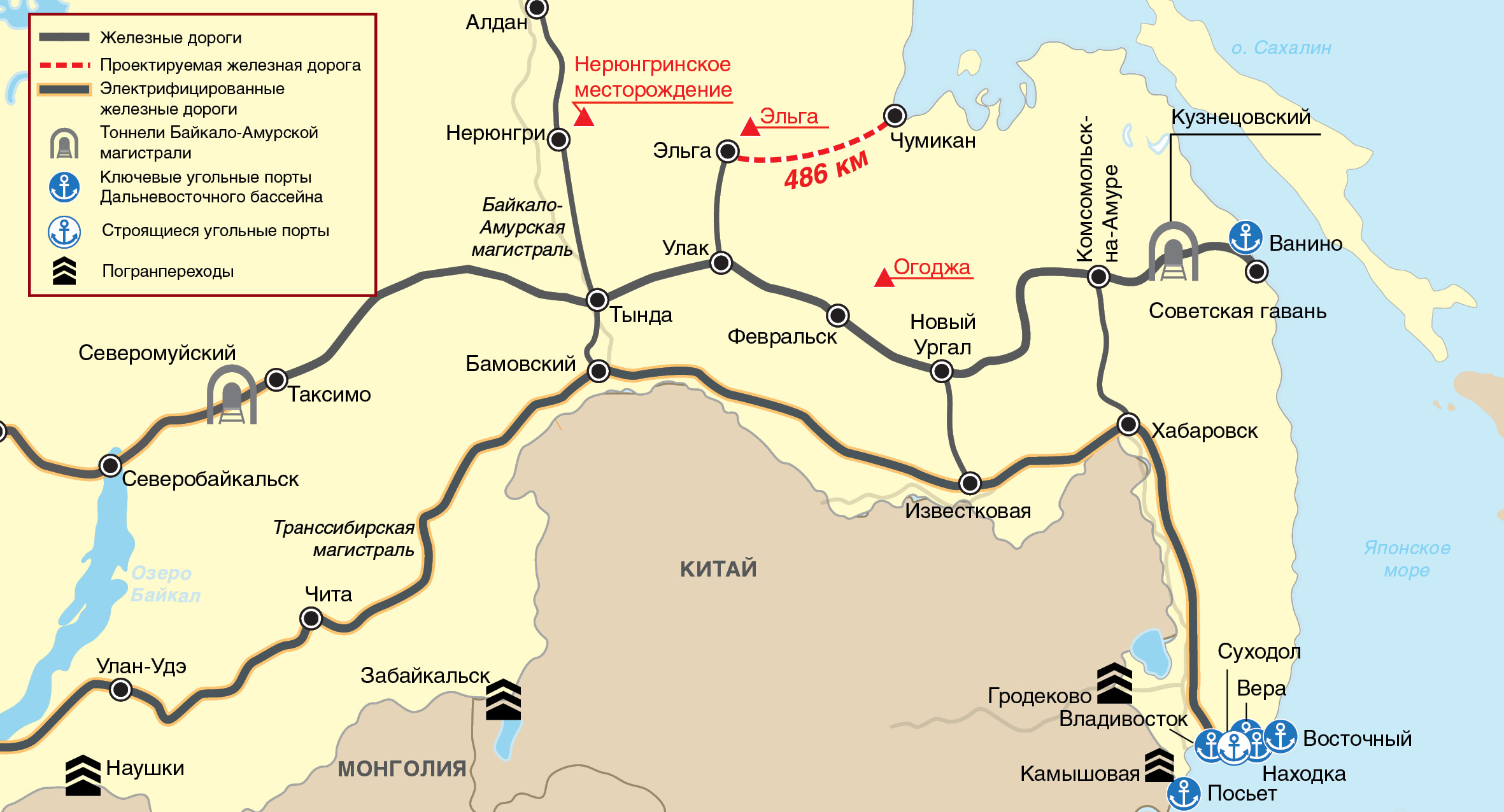 По заявлению полномочного представителя президента в Дальневосточном федеральном округе Юрия Трутнева, около 15.0 млн т. угля застряло на подходах к портам Дальнего Востока. Из-за ограниченной пропускной способности БАМа и Транссиба поставщики несут убытки из-за разрыва между объемом железнодорожных перевозок и мощностями по перевалке угля в портах. Трутнев подчеркнул, что портовые мощности используются не полностью, и ОАО «РЖД» необходимо ускорить строительство и модернизацию железнодорожной сети. По словам чиновника, основными факторами, сдерживающими рост экспорта угля, являются проблема синхронизации железнодорожных и портовых проектов, а также медленные темпы строительства железнодорожной инфраструктуры, которая не справляется с резким увеличением экспортных поставок.