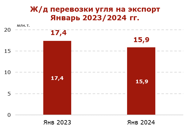 При сохранении низких мировых цен и перечисленных неблагоприятных факторов, российские угольные компании будут вынуждены все больше и больше сокращать добычу, а в отдельных случаях закрывать добывающие предприятия и сворачивать проекты на новых месторождениях. В особенности это касается высококачественного материала из Кузбасса, где в прошлом году объемы производства упали на 4.2%. В январе 2024 г. добыча продолжила сокращаться, снизившись на 2.3%.