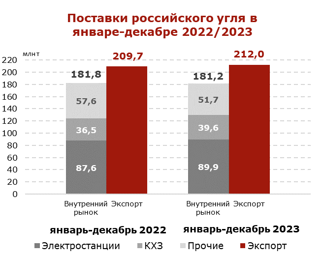 В 2023 – начале 2024 г. российские производители угля продолжают сталкиваться с вызовами и неблагоприятными факторами, включая: снижение мировых цен, рост ж/д тарифов и стоимости перевалки в портах, а также логистические сложности, выражающиеся в ограниченной пропускной способности на сети РЖД и длинном транспортном плече (дорогой фрахт) при поставках угля на рынок АТР через порты европейской части России.