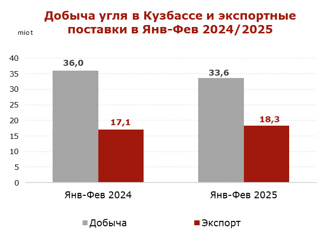 Падение экспортных поставок связано с серьезными логистическими проблемами, а также с международными санкциями, низкими мировыми ценами и высокой себестоимостью, вследствие которых большая часть производителей вынуждена экспортировать уголь с нулевой или отрицательной рентабельностью.