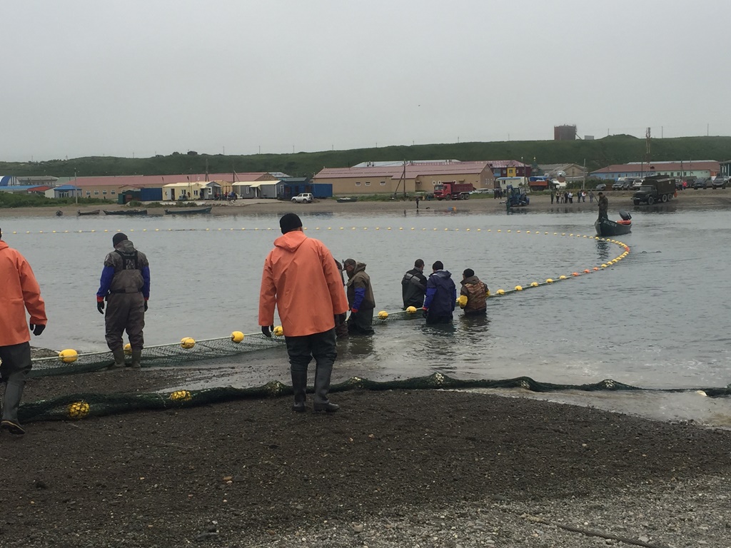 На Озерной нерку добывают закидными неводами. Сначала закидывают сетное полотно, выстраивая дугу, при этом оба конца смотрят на берег. По кромкам сети висят грузы, чтобы не дать рыбе вернуться в реку во время вытягивания невода.