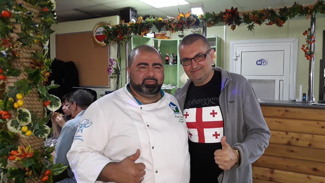 После концерта банкет был организован в маленькой комнате справа от сцены, где в тот июньский вечер пятницы было так жарко (о кондиционерах не было и речи), что директор Шуфутинского Наталья Бережиани даже сняла с себя всё лишнее, оставшись в одной легкой майке.