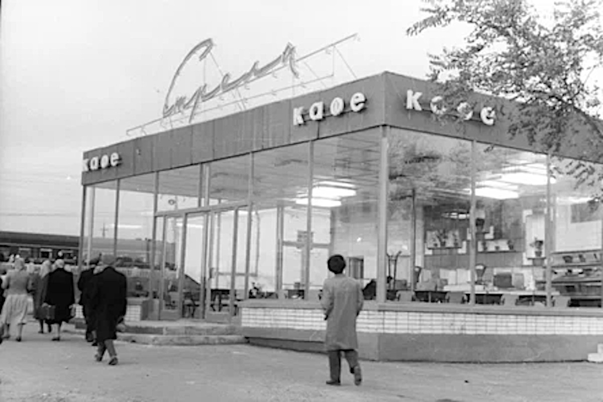 Радует, что привокзальные кафе в Хабаровске были типичным представителем нового стиля в советской архитектуре - они строились стеклянными. Первые кафе «стекляшки» с окнами до пола стали появляться в СССР 60-е годы и Хабаровск не остался в стороне...