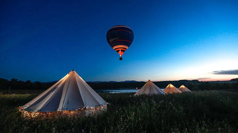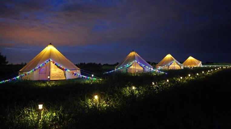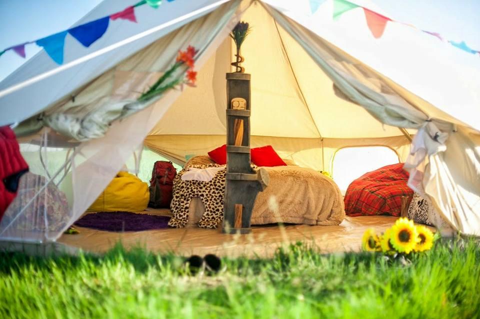 Вокруг этих палаток какое-то пространство интересное, лес, поле, река, озеро. Рядом зона, где можно что-то приготовить, костровая зона, где можно поболтать ночью, в пуфиках полежать, на звезды попялиться, укутаться пледом. Девчонки приезжали, было очень кайфово, сидели, винчик пили, что-то кушали, жарили на костре, смеялись, звёзды изучали по приложениям. Это была приятная атмосфера.