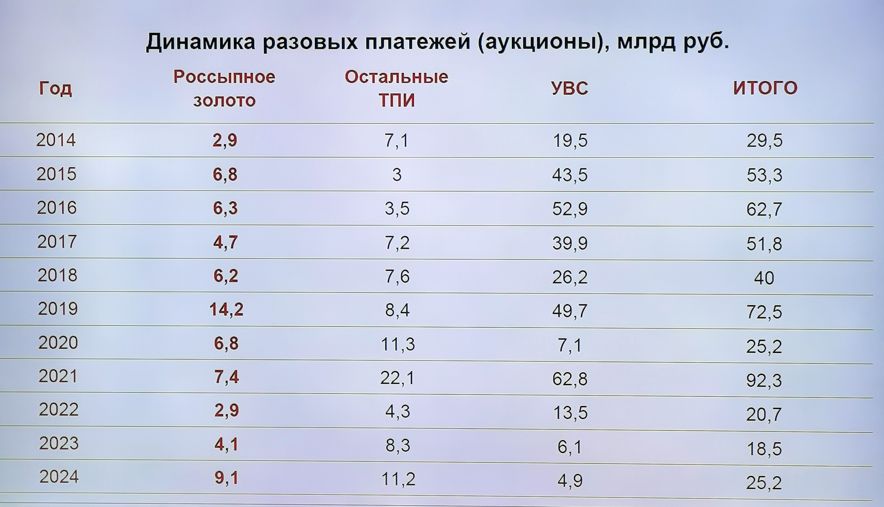 По данным Федерального агентства по недропользованию (Роснедра), уровень добычи россыпного золота в последние годы держится на стабильной отметке 75–85 тонн в год. Иллюстрируя значимость этой разновидности добычи драгметалла, Олег Казанов, руководитель Федерального агентства по недропользованию (Роснедра) привел такие данные: в 2024 году из 25 млрд рублей, которые государство получило по итогам аукционов, около 9 млрд приходится на россыпное золото. Эта сумма почти равна поступлениям от остальных твердых полезных ископаемых.
