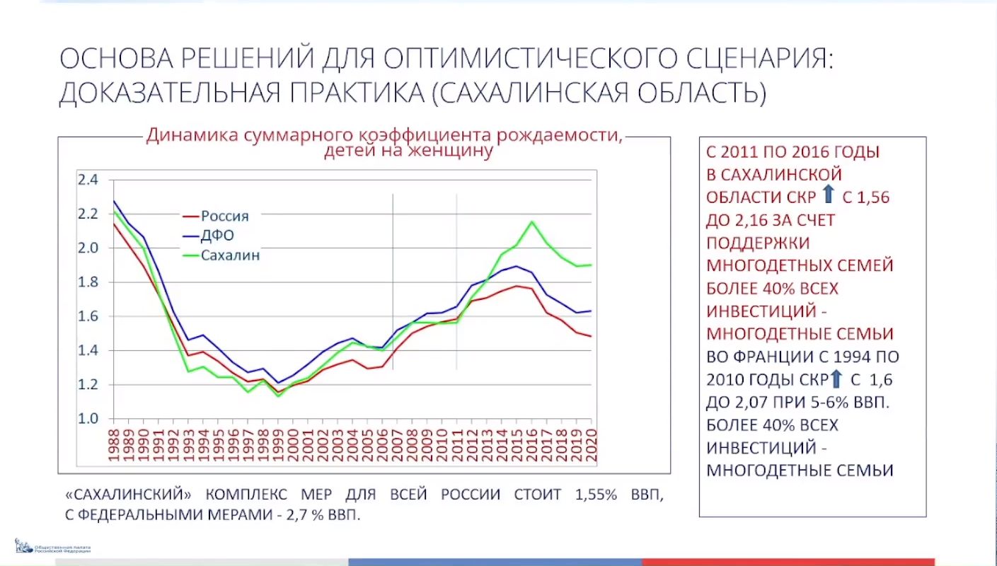 Статистика вдохновляющая, и в некоторых регионах даже удается сделать так, чтобы рождаемость превышала смертность, но процесс этот долгий и трудоемкий: тут и о здоровье детей надо подумать, и о репродуктивном здоровье родителей и вообще – о здоровье и долголетии. Нужны больницы, квалифицированная медицина, а еще – желание людей. Модератор и эксперт пленарного заседания, директор института демографии ВШЭ Михаил Денисенко заявил, что улучшать демографию на Дальнем Востоке необходимо не только финансовыми мерами поддержки, которые имеют ограниченный эффект для рождаемости. По его мнению, необходимо развивать иные, немонетарные меры поддержки российских семей.