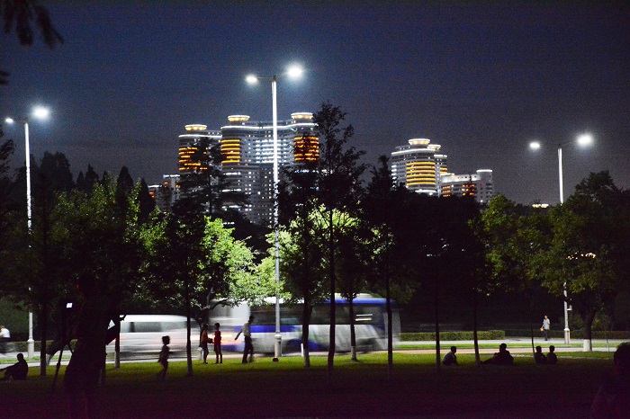 Вечером заехали в небольшой пхеньянский бар, а затем немного пофотографировали вечерний Пхеньян.