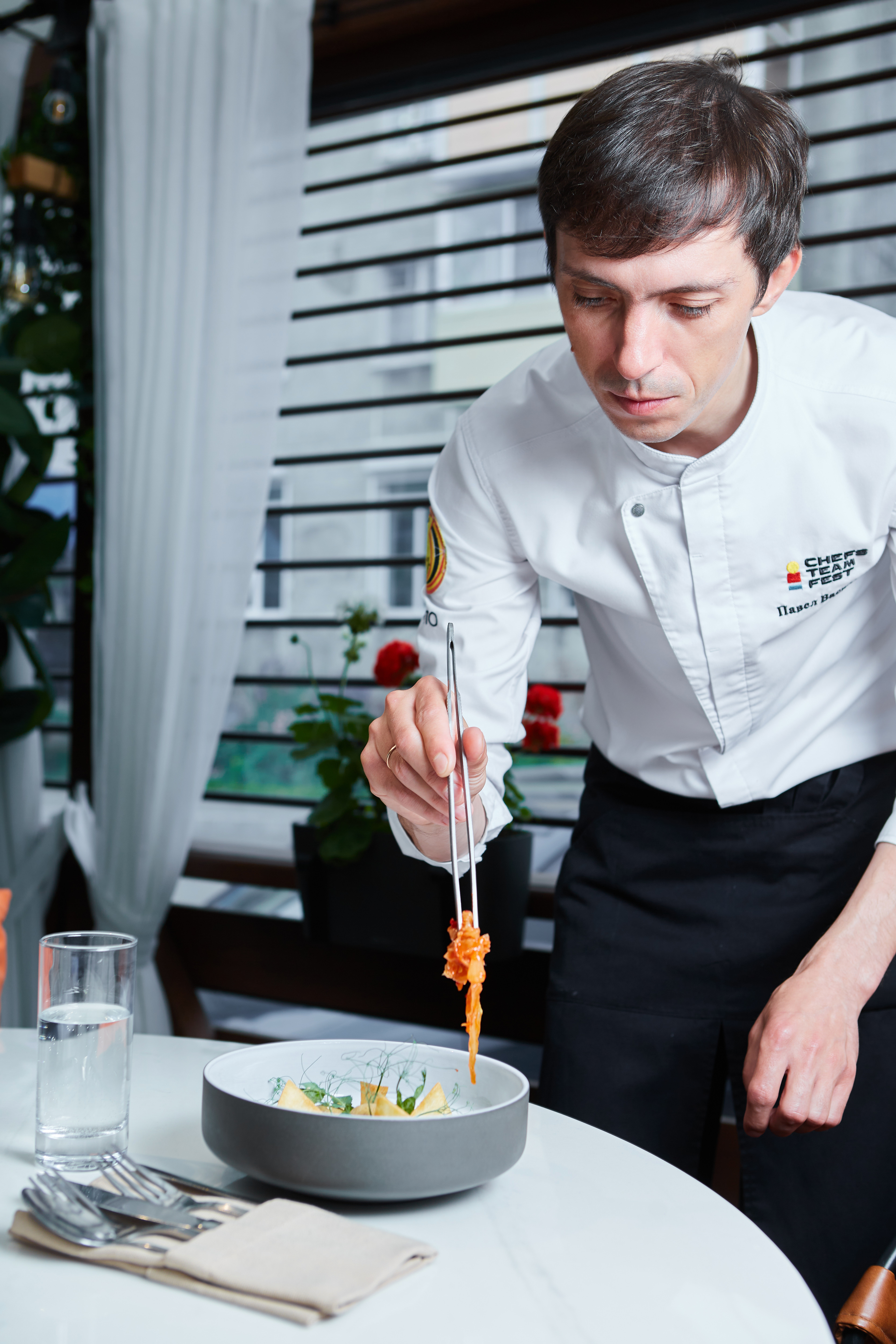 – В Тверском колледже сервиса и туризма. Поступил туда по программе после 9 класса, потерял два года, но вообще не жалею. Окончил с красным дипломом. В конце учебы я участвовал в соревнованиях по кулинарному мастерству среди москвичей и выиграл. Меня пригласили работать в Москву в один из санаториев, я там проработал месяц и понял, что это не то, чем я хотел заниматься. Ушел оттуда и вернулся в Тверь, меня позвал мой первый наставник, он же готовил к этим соревнованиям. С ним я проработал пять лет. Это Кирилл Иванов, он воспитанник Алена Дюкасса – самого титулованного мишленовского французского повара.